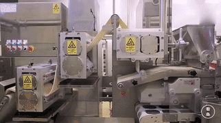 動圖中的生產線井然有序地運作著,隔著屏幕都能聞到香辣氣味。工業食物的制造,非常重要的就是標準化和穩定。有機菜油、好辣椒、油溫和炒制時間,這些因素嚴格按照商業機密的配方,保證了老干媽穩定的口感。
